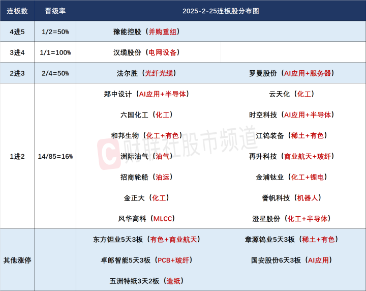 连板晋级率57.14%,高位股整体分化态势依旧,虽然4进5的豫能控股在内的多只连板股实现晋级,但盘中均呈现巨量换手,而另一只4连板个股美邦股份盘中上演“天地板”。春节假期前人气高涨的影视、传媒板块亏钱效应依旧,博纳影业、横店影视、掌阅科技遭遇2连跌停。与此同时,涨价概念除去化工、有色齐头并进外,钢铁、建材等低位方向展开补涨,此外铜箔、电子布等PCB产业链上游也再度迎来爆发。不过算力租赁、存储芯片等热门科技方向大批人气品种也展开逆势调整,在科技股内部博弈加剧之际,市场风偏短期改善仍较为有限。