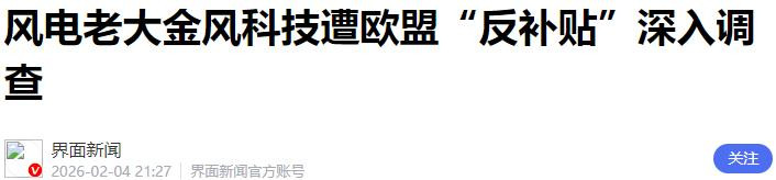 2月4日,中国商务部与外交部同步发声,指责欧方滥用单边工具损害公平竞争。商务部指出,欧盟近期频繁依据《外国补贴条例》对中国企业发起调查,尤其是将对风电和安检设备企业的调查升级为“深入调查”,具有明显针对性和歧视性。
