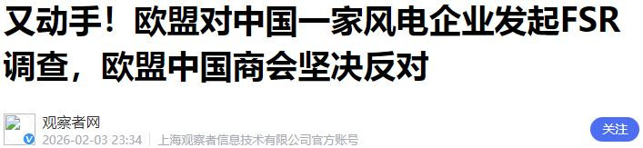 又动手!欧盟对中国一家风电企业发起FSR调查,欧盟中国商会坚决反对